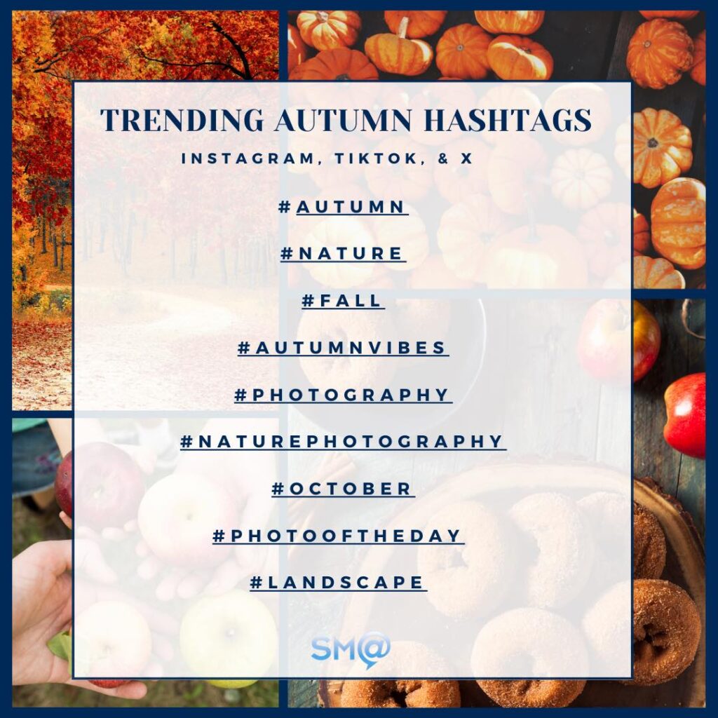 9. Engage with Seasonal Hashtags: Research popular fall-related hashtags on social media platforms like Instagram and Twitter. Incorporate these hashtags into your posts to increase your visibility among users interested in fall content.